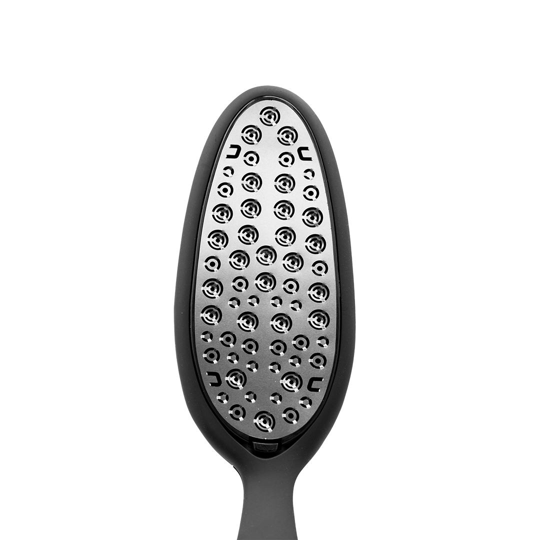 A comfortable and light soft touch handle, along with it's unique concave high-quality stainless steel inlay, this file only removes rough skin, ensuring that healthy skin is not damaged.