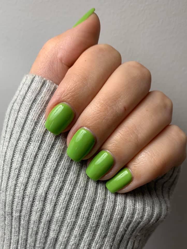 The bright yellow tint of this lime green polish is nothing short of glorious.